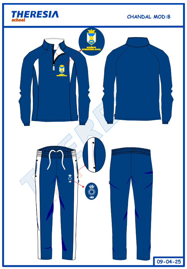 UNIFORME DE DEPORTE: (Todo el colegio) Camiseta, sudadera, y pantalón de deporte cuyo material es transpirable.